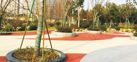 廣霸透水混凝土,擁有自主研發(fā)的膠結(jié)料,同時多年的施工經(jīng)驗總結(jié)了科學(xué)合理的配比方案(骨料、水泥、膠結(jié)料、顏料、水等),確保了施工路面具有良好的美觀性、抗壓性、透水性效果。